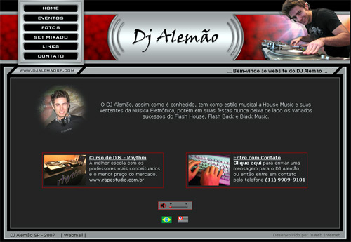 DJ AlemãoO layout foi desenvolvido seguindo a linha "DJ", na qual a InWeb já desenvolveu diversos projetos na mesma área. O site apresenta as informações sobre o DJ, informações e fotos de eventos, sets mixados, links e métodos de contato.