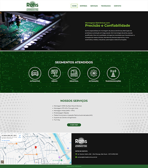 Rohs EletrônicaEmpresa de São Paulo (SP), especializada na montagem de placas eletrônicas e fabricação de protótipos, na área automotiva, médica, industrial, automação e telecomunicações. O site apresenta a empresa, os serviços oferecidos, além de métodos de contato.